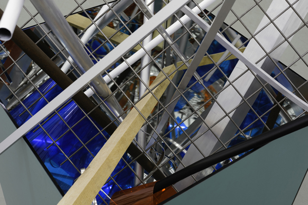 Mirror glass, steel, aluminum, wood, PVC
